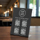 Give customers multiple ways to connect with your business using this multi-QR Code black pedestal sign, designed for clarity, flexibility, and a polished professional look. Featuring a clean layout, modern white lettering, and space for your logo and business name, this tabletop sign allows you to display up to 4 scannable QR codes, each with its own custom label for clear navigation. Ideal for restaurants, cafés, salons, boutiques, clinics, gyms, offices, events, and trade shows, this pedestal sign lets customers quickly access different destinations—such as your website, menu, booking page, pricing, reviews, social media profiles, or payment links—all from one convenient display. Freestanding and easy to place on counters, desks, or reception areas, this QR code pedestal sign helps streamline customer interactions, reduce printed materials, and support a modern, contactless experience while reinforcing your brand identity.