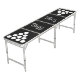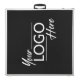 A simple black and white beer pong table for your business featuring cup layouts and your logo.
