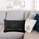 A stylish, classic black background. Personalize and add your business, company logo and a text. White letters. If you want the pillow without text, use your back-space key to delete.