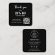 A minimalist custom business logo black and white QR code discount card for a professional business to use as a promotional tool to develop customer loyalty. Replace the image with a square photo of your logo. You can change the font, font color, font size, letter spacing, background color, color of the Thank you graphic and reposition the text using the Design Tool. You can also change the social media icons so they are relevant to your business. The simple modern elegant design is yours to customize as you wish.