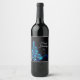 A trendy and modern Christmas, Holiday wine label in black, blue and white for a company, business. A black background with a shining blue Christmas tree decorated wiht stars. With the text: Happy Holidays written with modern large white hand lettered style script, white letters. Templates for your logo and a year.