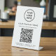 Elevate your countertop, reception desk, or checkout area with this custom QR code pedestal sign, designed to make connecting with your business fast, simple, and professional. Featuring a clean white layout, modern typography, and space for your logo and business name, this tabletop sign blends seamlessly into any retail, salon, clinic, café, office, or service-based environment. With a single scan, customers can instantly view your services, prices, menu, or offerings online. Zazzle automatically generates the QR code from the website address you provide, so there’s no extra setup or technical work required—just enter your URL and Zazzle does the rest. The sturdy pedestal design keeps the sign upright and easy to read, making it ideal for high-traffic counters and front desks. This personalized QR code tabletop sign is a smart, contactless solution for sharing information, increasing website visits, and enhancing customer experience while reinforcing your brand identity in a polished, professional way.