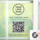 Modern window sign for your business with your QR code for customers to scan for a list of your products, services and prices. Add your logo, business name, phone number and street address in simple typography. Input your website URL address to create a scannable QR code.