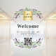 A transparent background and black text. Decorated with lavender, violet flowers and eucalyptus greenery. Personalize and add your logo and text. Add your web url to your website (or social media account) to the QR code.