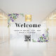 A transparent background and black text. Decorated with lavender and eucalyptus greenery. Personalize and add your logo and text. Add your web url to your website (or social media account) to the QR code.