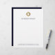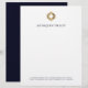 A luxurious custom business letterhead template in a modern dual-sided style with a clean simple white front and solid navy blue back. This elegant template can be easily updated with your company logo and letterhead footer including your company's name, address, and contact information. The solid navy blue back features the logo in the lower thirds for continuity in the design. Each sheet exudes professionalism and sophistication, making it perfect for official correspondence and important business documents.