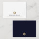 Make a lasting impression with these note cards featuring a modern minimal professional dual-sided design. The front features a simple clean white background with your logo and company name, tagline or custom text in navy blue and golden classic serif typography. The back features a solid navy blue background with a smaller distinguished brushed gold geometric diamond logo. Ideal for sending personalized messages and thank-you notes to clients.