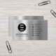 A modern minimalist personalized business card for anyone. A simple and professional way to introduce your business. Personalize with your logo, QR code and details to create your own unique elegant silver look business card. Customize even further with a custom color background or font. Social media icons included in the design of this business card for you to use.