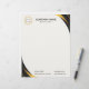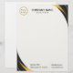 Black and gold modern professional business logo letterhead with template fields for name, company name/title, logo (photo or other graphic) and contact information. You can customize the text size, font and color to suit your own personal preference.