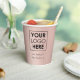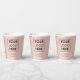 A professional business logo and text paper cup with a pink rose gold background. Perfect for your business, office, corporate event, hospitality business etc.