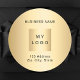 A faux gold looking background, black text. Personalize and add your business name, logo and address or text.
