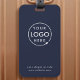 A simple custom navy blue business luggage tag template in a modern minimalist style which can be easily updated with your company logo, slogan and business details. #luggagetag #logo #business #travel