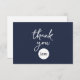 Business logo thank you card. Handwritten script on a solid color background. Includes prewritten text on the back that can be changed or deleted to handwrite a message once your cards arrive. Multiple color choices available to match any business, professional, company or corporate brand.