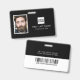 Company employee ID badge featuring a black background that can be changed to any color, a photo of your employee, your business logo, first name, last name and professional title.