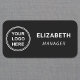 Professional black name tag with your business logo. Add a name and title/position in simple white typography.