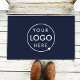 A simple custom navy blue door mat template in a modern minimalist style which can be easily updated with your company logo.