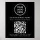 Modern black poster sign for your business with your QR code for customers to scan for a list of your products, services and prices. Add your logo, company name, QR code, phone number and street address in simple white typography.