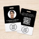 Modern and professional black employee ID badge featuring their photo in a circle frame, their name and title, and your business or organization's logo. On the back, add any additional information and optional QR code.
