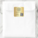 Give your brand a sleek, professional edge with these gold custom logo and QR code stickers, perfect for small businesses, creators, and service professionals. Upload your business logo and QR code to create polished labels that make it easy for customers to connect instantly with your website, social media, or online shop. Featuring an elegant gold gradient background and clean minimalist layout, these stickers are ideal for product packaging, marketing materials, thank-you cards, and shipping boxes. Printed on a convenient roll for quick application, they help your brand look cohesive, professional, and ready to impress.