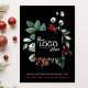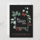 Elegant black business Christmas holiday greeting card featuring your company logo framed by a watercolor illustration of a red cardinal and seasonal winter greenery. Personalize your greeting as well as your name in simple red and white typography. On the back, add an additional message of customer appreciation and and input your website address to create a scannable QR code.