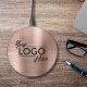 Chic promotional wireless charger for your business or organization featuring your logo on a brushed rose gold faux metallic background.