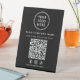 Make it easy for customers to connect with your business at a glance with this custom QR code pedestal sign, designed for clean, modern, and effective in-store communication. Featuring a minimalist black layout, simple white typography, and your logo, business name, Facebook, Instagram and TikTok social media handle, and a prominent scannable QR code, this tabletop sign delivers a polished, professional presence on any counter or table. Perfect for restaurants, cafés, salons, boutiques, clinics, offices, hotels, and pop-up shops, this pedestal sign allows customers to instantly access your website, menu, services, pricing, booking page, or promotions with a single scan. Simply enter your website address, and Zazzle automatically generates the QR code. Durable, freestanding, and easy to display, this QR code pedestal sign helps streamline customer interactions, increase website traffic, and support a modern, contactless experience—all while reinforcing your brand with a clean, cohesive design.