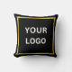 A placeholder image is on this black throw pillow. You can replace the image with your company logo. The faux gold border is not made of foil.
