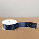 This custom navy satin ribbon features your business logo for professional branding. Perfect for packaging, corporate events and marketing displays, it showcases a standard logo design in high quality satin suitable for promotional use and company packaging.