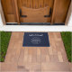 A simple custom navy blue welcome door mat template in a modern minimalist style which can be easily updated with your company logo and greeting.