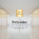 Business logo welcome opening hours window cling