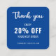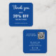 A minimalist blue and white discount card with QR code for a professional business to use as a promotional tool to develop customer loyalty. You can change the font, font color, font size, letter spacing, background color and color of the Thank You graphic using the Design Tool. You can also change the social media icons so they are relevant to your business. The simple modern elegant design is yours to customize as you wish.