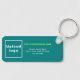 Rectangle keychain that you can customize and use it as a promotional product to promote your brand name to customers or include it in your marketing materials to advertise your business. You can also give this keychain as a giveaway item to your customers. An accessory with your business name and logo to build brand name awareness. Keychain color is teal and font colors are yellow green and white. To customize this keychain, upload your business logo, type your business or company name, address and phone number then check the appearance in front and back sides. If the appearance is pleasing to you, you can place your order now. If you need to resize and move the logo and texts to fit in this keychain or in other styles and sizes that you will choose, please change in the design tool. You can also make other changes according to your preference in the design tool such as changing the background color, font color and font style.