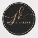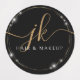 Business Monogram Script Logo Glam Waterproof Labels. Elegant custom color business waterproof product labels featuring a monogram initials logo in fancy calligraphy script with swashes and your custom text accented with an elegant, glamorous glitter and sparkle circle frame. Choose your text and background colors in EDIT to match your branding (shown in gold and white on black). ASSISTANCE: For help with design modification or if you would like coordinating items, contact the designer BEFORE ORDERING via the Zazzle Chat MESSAGE tab or email makeitaboutyoustore@gmail.com.