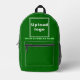 Green backpack that you can customize by typing your business name and uploading your business logo. Bag that you can include in your promotional products, giveaway items or gifts to your customers or clients, a marketing strategy to advertise your business or to promote your brand name. Customizable backpack that you can use to build brand name awareness. Please check the appearance after typing your business name and uploading your business logo. If the appearance is pleasing to you, you can place your order now. If you need to resize and reposition your business name and logo to fit in the template, please adjust in the design tool. You can also change the background color, font color and font style in the design tool.