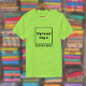 Lime green t-shirt that you can customize by typing your business name and uploading your business logo. You can include it in your promotional products, giveaway items or gifts to your customers or clients, a marketing strategy to advertise your business or to promote your brand. Customizable t-shirt that you can use to build brand name awareness. Please check the appearance after typing your business name and uploading your business logo. If the appearance is pleasing to you, you can place your order now. If you need to resize and reposition your business name and logo, please adjust in the design tool.
