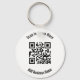 A display image is in the center. You can enter your website URL to create a custom QR code. Above and below the image, there's a line of black text you can edit to show your company name and a custom message (Shown: Scan To Learn More). The keychain has a black border.