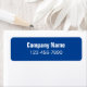 These labels have a two-line text template. The first line is in bold font for your company name. The second line is for your phone number. Both lines can be edited to show your custom message. The text is white. The labels are deep blue.