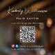 Elegant and chic custom window cling for your business featuring your name in a stylish white signature script and business type below in simple modern white typography. Input your website URL address to create a QR code for customers and clients to scan for a list of your products, services, hours, etc. Add your instagram and facebook user ids for customers to follow you on social media.