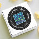 Business Name, Logo, Address, White Text on Black Classic Round Sticker