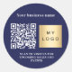 Business name navy blue logo qr code classic round sticker