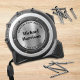 Modern tape measure for your construction, contractor, remodeling, interior design, real estate or other business featuring your name in bold typography on a brushed silver faux metallic background. Add two lines of additional text, such as your business title, slogan or contact information.