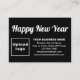 Happy New Year! A new beginning. A fresh start. Holiday to celebrate this January and to advertise also your business. Enclosure card that you can customize to put your business brand and with New Year greeting. Customize it and use it to greet your customers or clients this New Year and as marketing material to advertise your business or to promote your brand name. You can also use it as accessory of packaging material of your product. Customizable enclosure card that you can use to build brand name awareness. Design colors are white texts on black background. To customize this enclosure card, upload your business logo, type your business name, address, phone number, e-mail and website or your business social media page. Please check the appearance on front and back sides after uploading logo and typing texts. If the appearance is pleasing to you, you can place your order now. If you need to resize and move the logo and texts to fit on this enclosure card or on the size that you will choose, please change in the design tool. You can also change the background color, font color and font style in the design tool. Happy New Year! Wishing you more sales this holiday and the years to come.