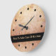 Great price for a very nice product. Arrived a day early - unheard of these days. The outside gold area has a little more orange tone to it than shown in the picture. Great packing so product can't get damaged. I used the same packing to forward the clock to my brother and sister-on-law for the 50th wedding anniversary. Printing was just as expected - lovely!