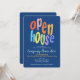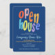 A business or corporate open house invitation. This fabulous invitation features bold modern typography on a blue background. Easy to personalize with your own open house event or launch celebration details.