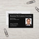Business performance coaching business cards with photo template you can replace with your own professional portrait for a more personalized design. Created for anyone who coaches executives, leadership, and works with groups or individuals.