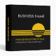 Corporate Business binders with yellow circle and stripes on black. It is a template and is great for small business. Project, presentation, office, manuals, portfolios, real estate, conference, report, consulting, finance, legal, insurance binders.