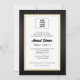 This dinner invitation features a classy business theme with a black background and light grey vertical pinstripes. This invitation space for your logo and custom text for your invitation details.