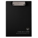 Custom clipboard featuring personalized simple modern monogram, name, and work title on the cover in the bottom corner. Ideal for business professionals, or personalized gift for him or her. Designed for Letter / A4 sized paper. Made of ultra-durable acrylic. Measures 9" W x 12.5" L inches.