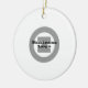 Lightweight, smooth, pure white ornament with nice sheen. Perfect size to be seen from across the room ... and to attract closer inspection! Price was great for ordering enough for the whole family! Clear, bold black design just as requested. Matches the order exactly. Just so nice!