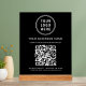Modern business black acrylic sign featuring your QR code for customers to scan to make a payment, see a list of your products, services and prices, book appointments, register, etc. Upload your logo and QR code and add your business name, phone number, street address or other information in simple white typography.